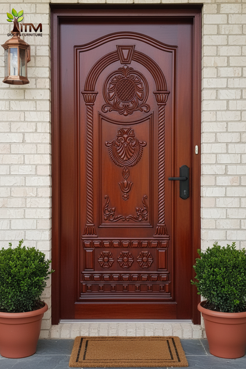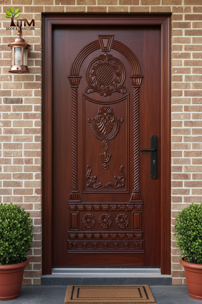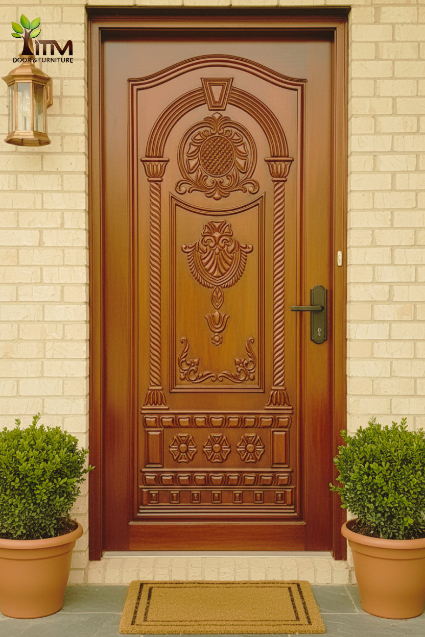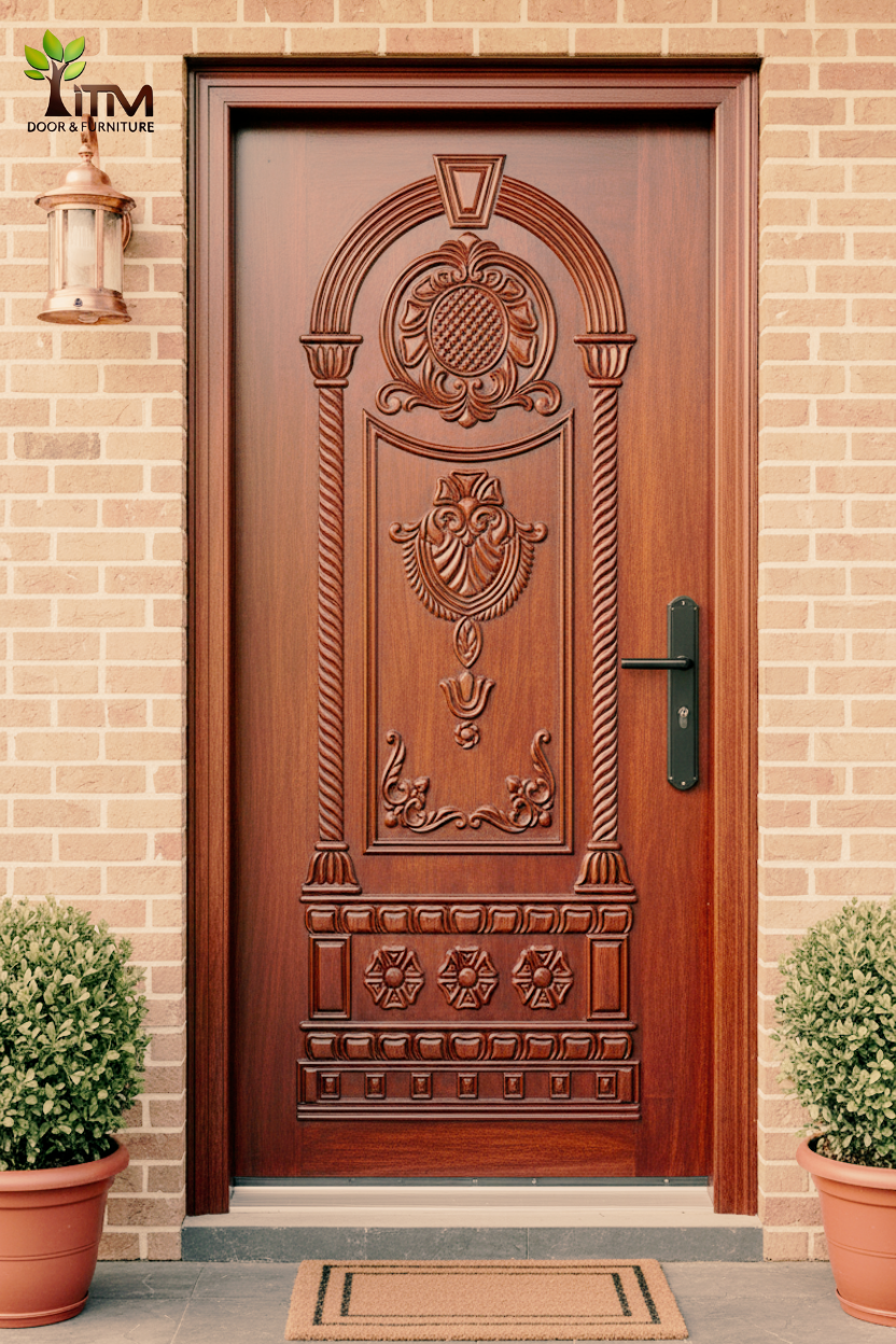 ITM প্রিমিয়াম কার্ভড উডেন ডোর 3D Two-Part Wooden Main Door - (ITM-WS-01)